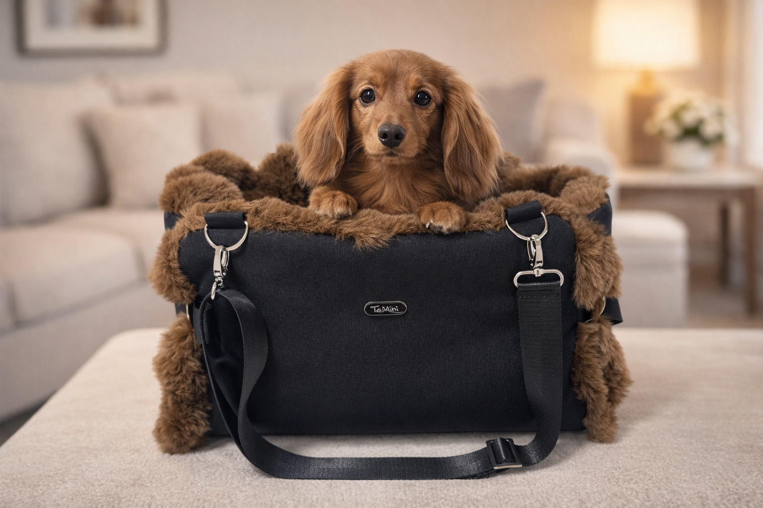 Diese handgemachte Hundetasche vereint Funktion und Komfort.