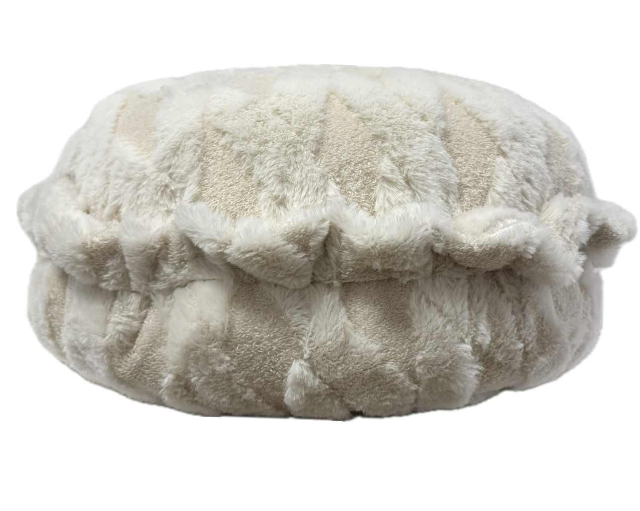 Gefertigt aus dichtem, hochwertigem Kunstpelz -TeddyMix in creme und gefüllt mit Ökotex-zertifizierten Faserbällchen, bleibt das Bett dauerhaft formstabil, federweich und hygienisch.