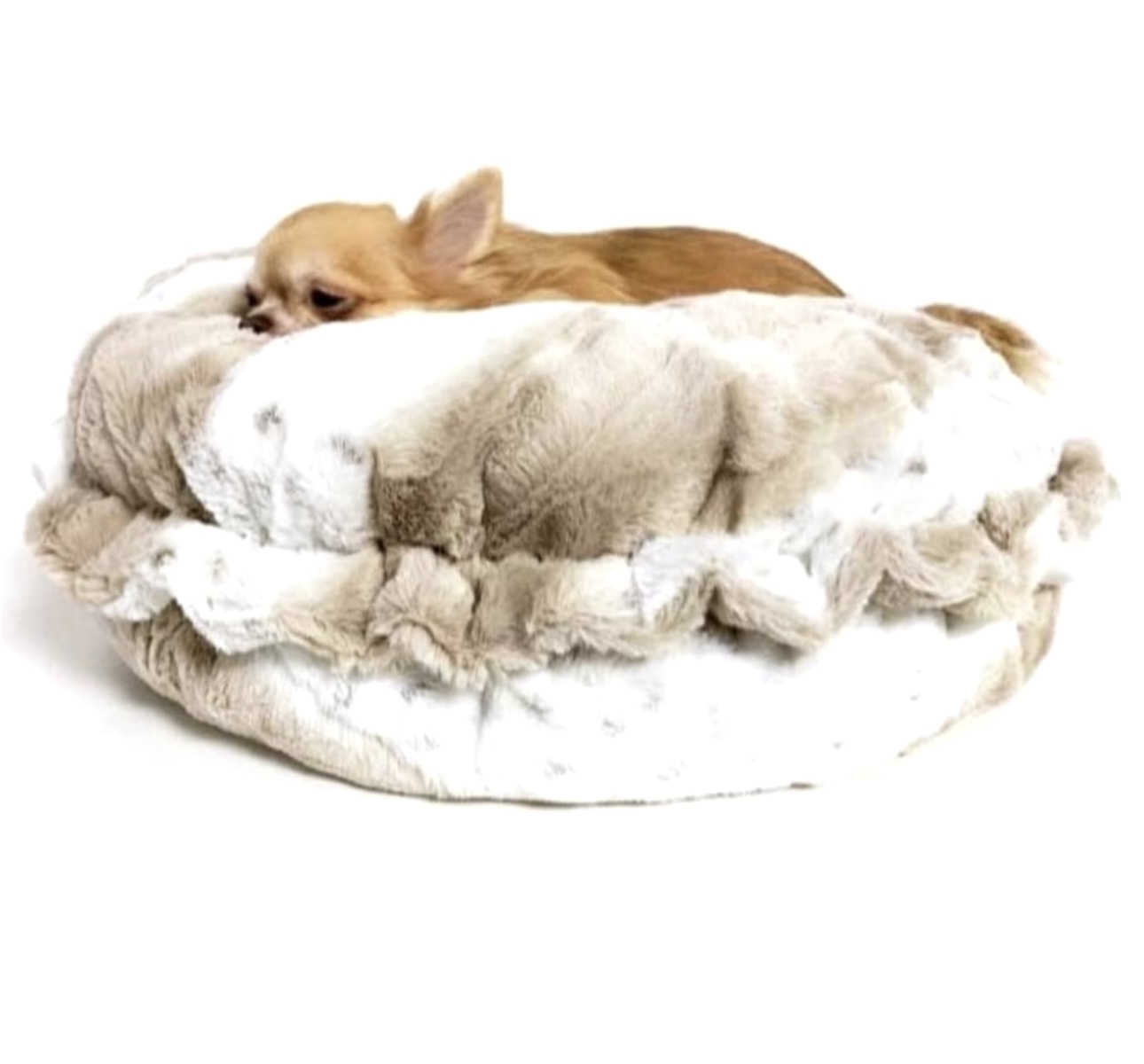 Das TaMini Macaron LUX ist mehr als nur ein Hundebett, es ist ein warmer, weicher Rückzugsort für kleine Fellnasen, die Geborgenheit lieben.