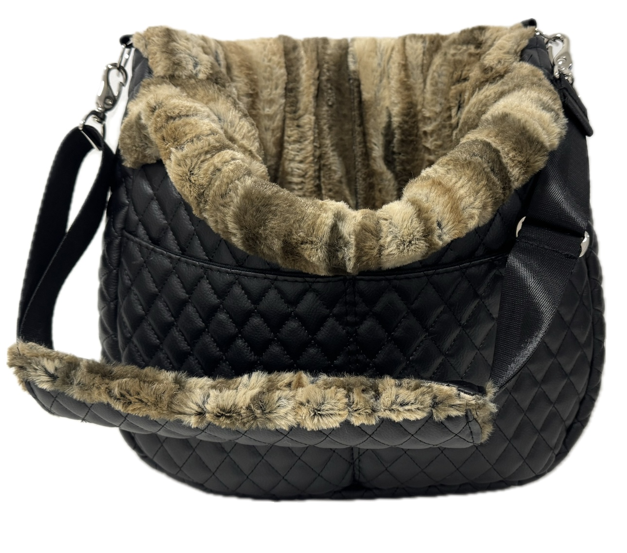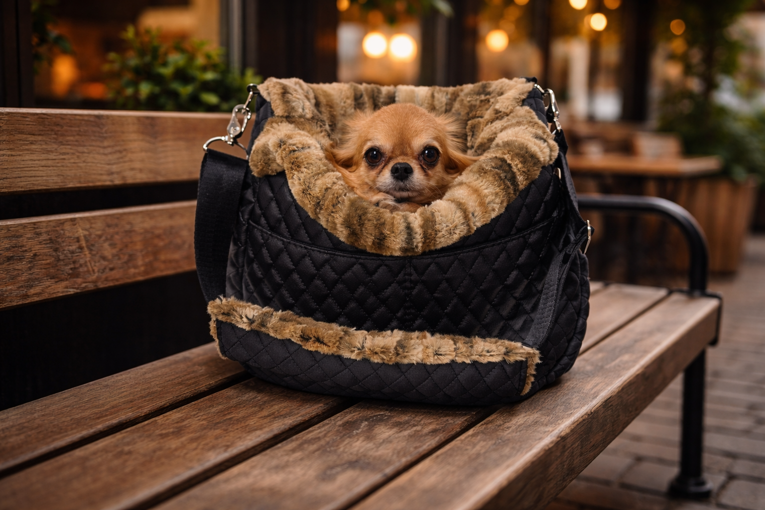 Das gesteppte Kunstleder außen verleiht ihr Form und Halt. Durch den A-förmigen Schnitt, der von TaMini entworfen wurde, ist die Tasche unten breiter als oben – so kann sich dein Hund unten schön einkuscheln, während die Tasche stabil steht.
